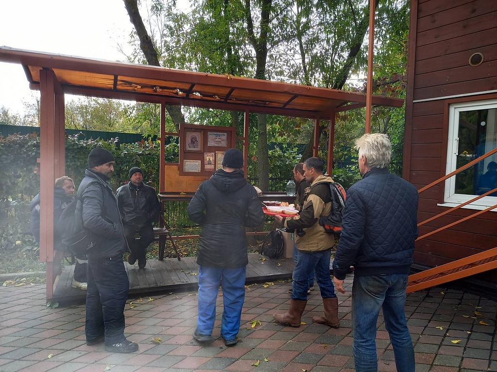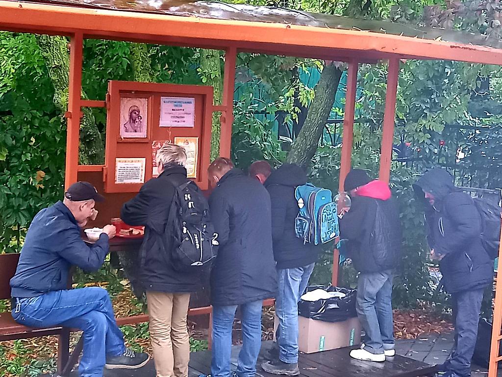 Еда раздается за территорией храма в одноразовой посуде с соблюдением всех санитарных норм и дезинфекции. При этом с бездомными волонтеры проводят беседы о Православной вере, пред трапезой совершают молитвы, соблюдая санитарные нормы и социальную дистанцию.