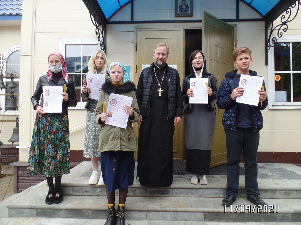 По окончании мероприятия, участники акции зашли в храм, зажгли свечи пред образом Божией Матери «Неупиваемая Чаша», помолились об исцелении страждущих недугом пьянства.