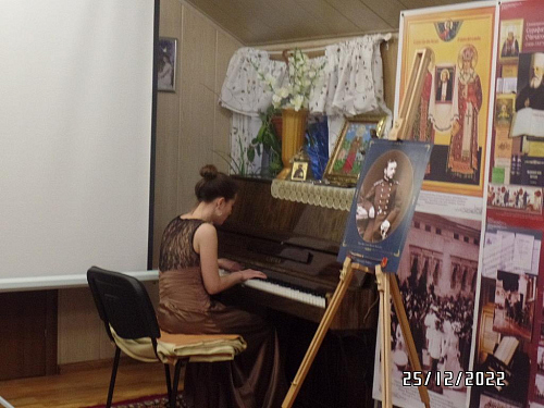 После концерта прихожане и гости смогли ознакомиться с фотовыставкой, подготовленной настоятелем храма иереем Максимом Глухих, и книжной выставкой, посвященными священномученику Серафиму.