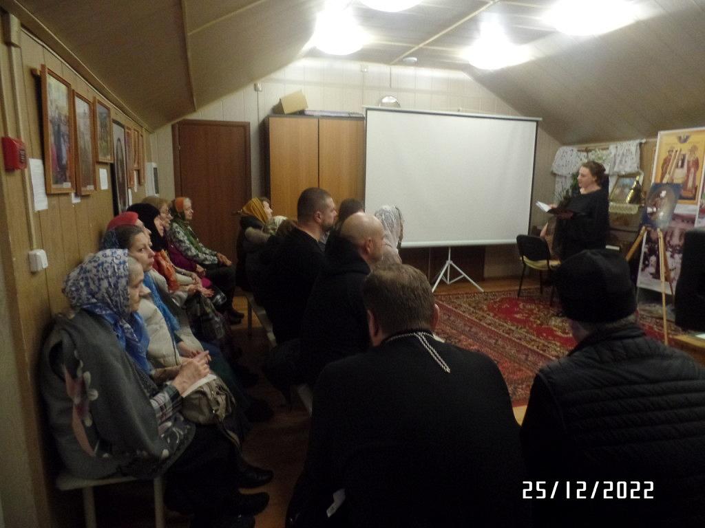 По благословению настоятеля храма иерея Максима Глухих, вечер был подготовлен и проведен регентом храма Богдановой Ларисой Павловной.