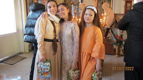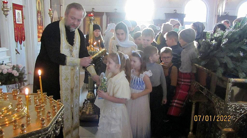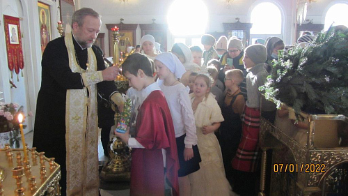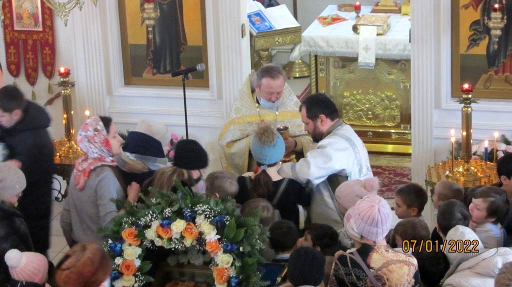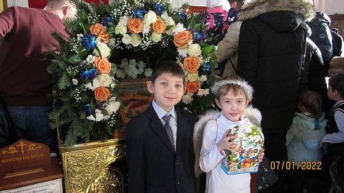 7 января 2022 года, в праздник Рождества Господа Бога и Спаса нашего Иисуса Христа, в храме священномученика Серафима, митрополита Петроградского, в Южном Бутове был отслужен праздничный Рождественский молебен со Святым Причастием для детей.