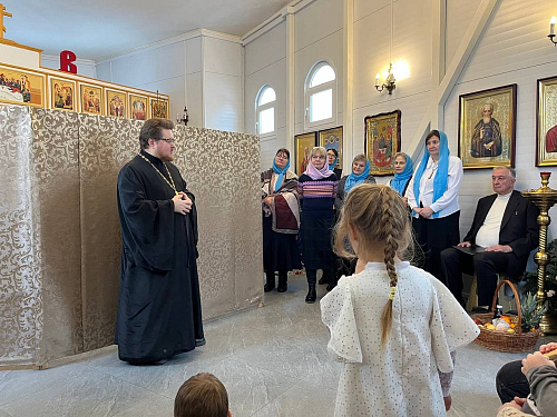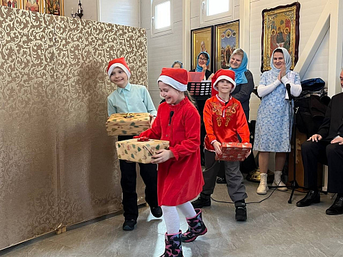 По завершении мероприятия настоятель храма иерей Евгений Марков вручил Рождественские подарки артистам и организаторам.