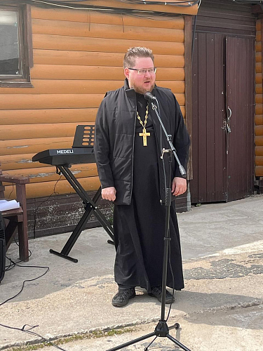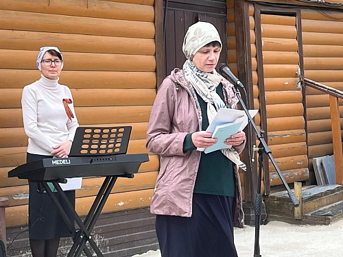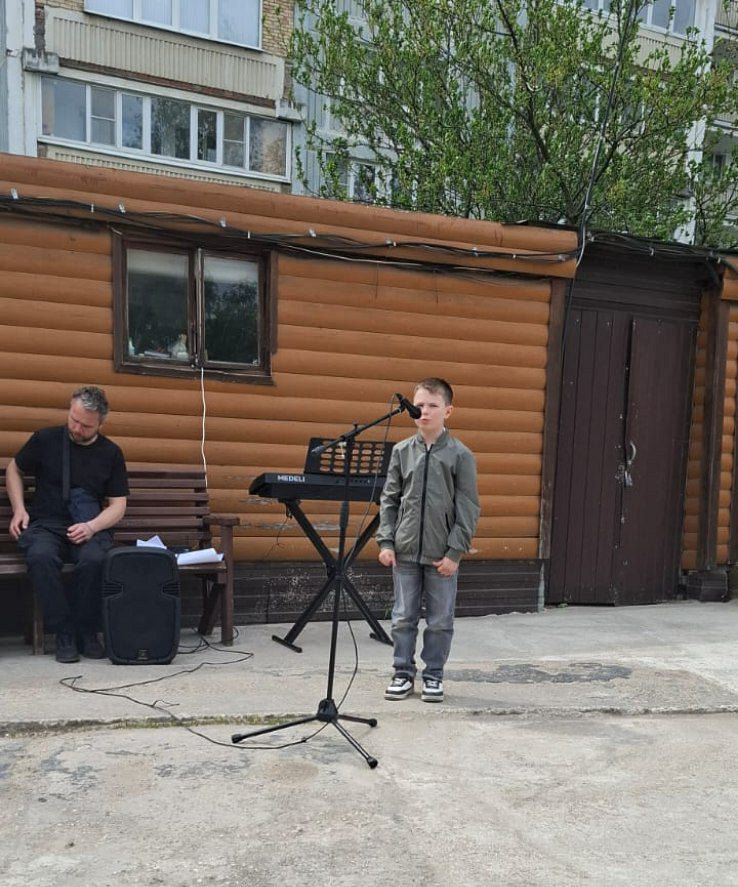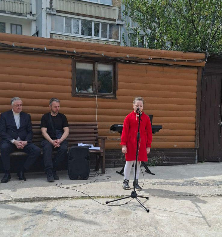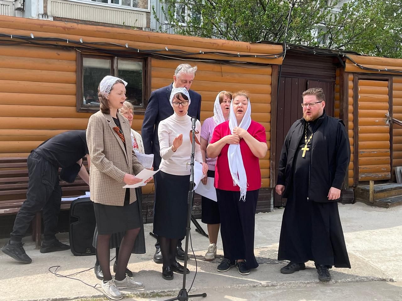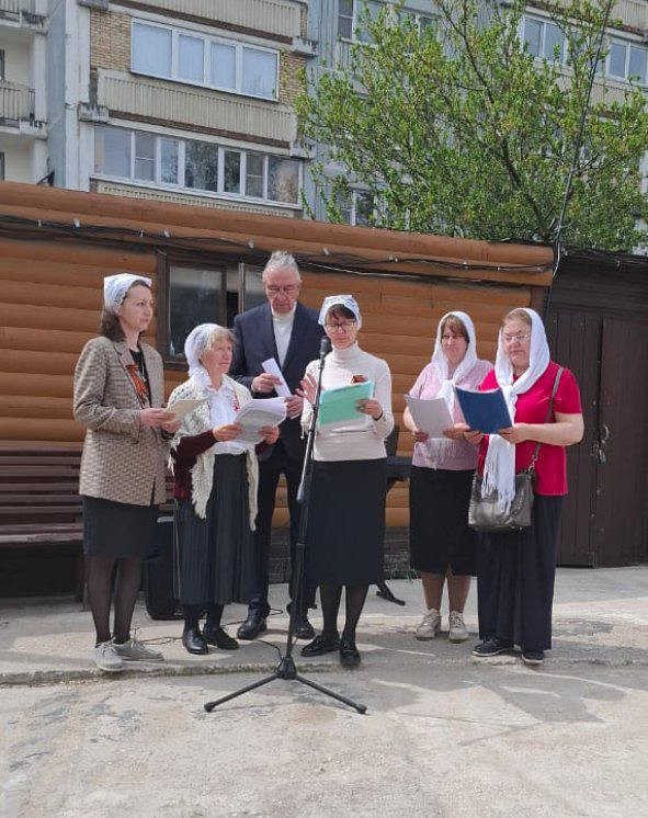 После Божественной литургии народный хор и учащиеся воскресной школы храма устроили небольшой концерт, посвящённый Дню Победы.