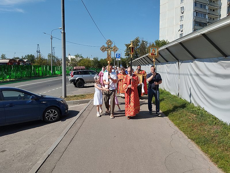 После службы под колокольный звон (звонарь алтарник храма Максим Старостин) священнослужители вместе с прихожанами прошли крестным ходом вокруг храма.