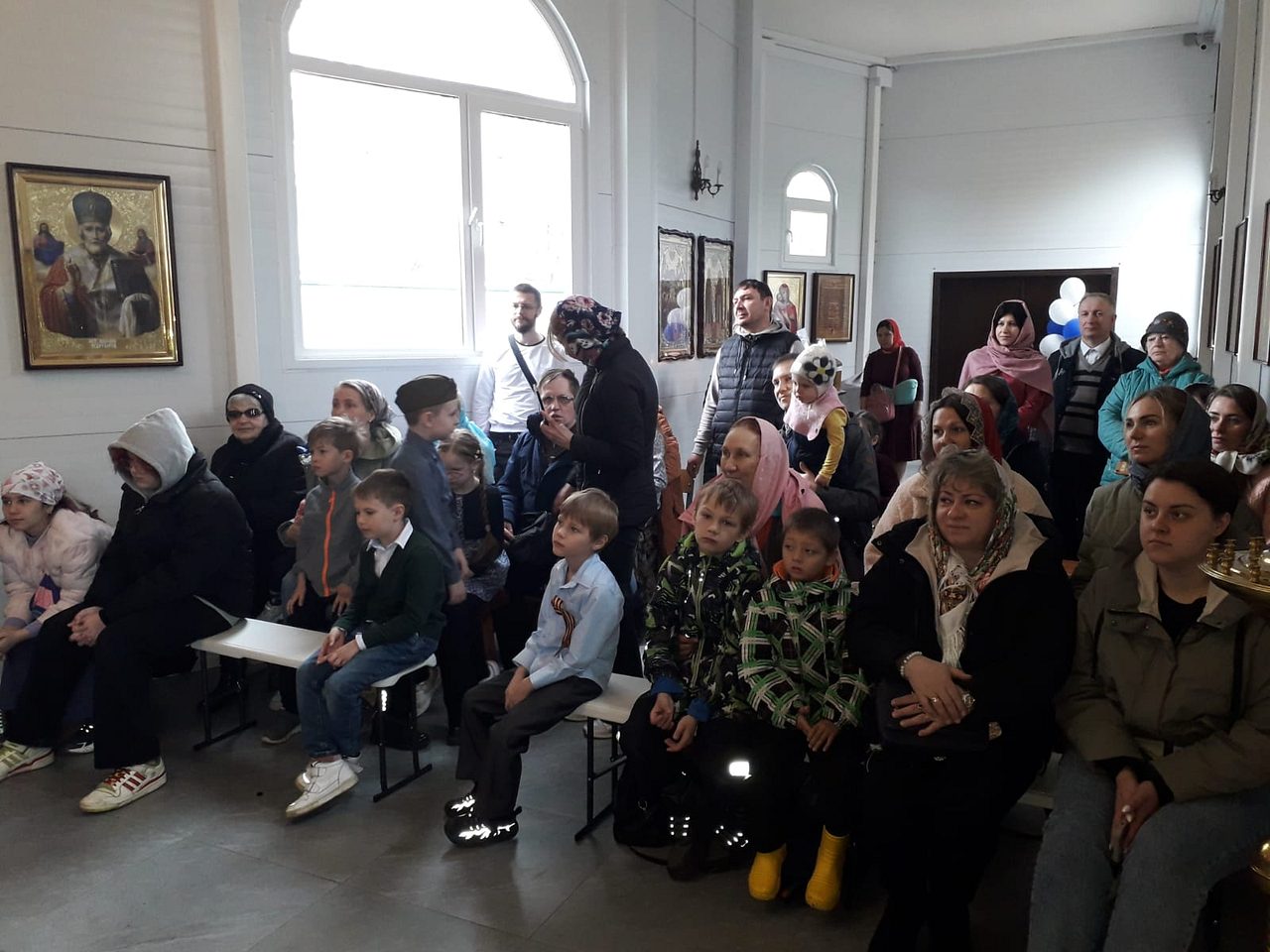 После концерта участников и организаторов праздника ждали подарки. Настоятель храма иерей Евгений Марков лично вручил их. Также он поблагодарил педагогов Воскресной школы Светлану Юрьевну Ратинову и Анну Серафимовну Горелову за их постоянный и нелëгкий труд.