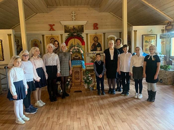Гостей встретила методист храма Наталья Александровна Астахова, которая провела для ребят экскурсию по храму, рассказала о празднике «Покрова Пресвятой Богородицы» и вместе с детьми поговорила о смысле исполненных ими песнопений.