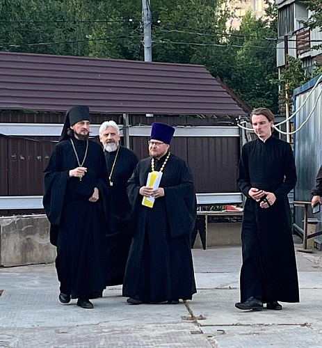 По окончании богослужения иерей Евгений провёл гостей на строительную площадку, где они ознакомились с ходом строительства большого каменного храма и проводимых в настоящее время работ.