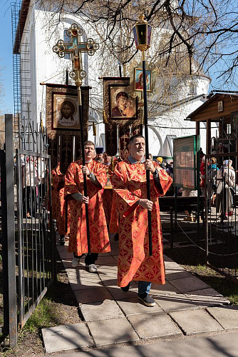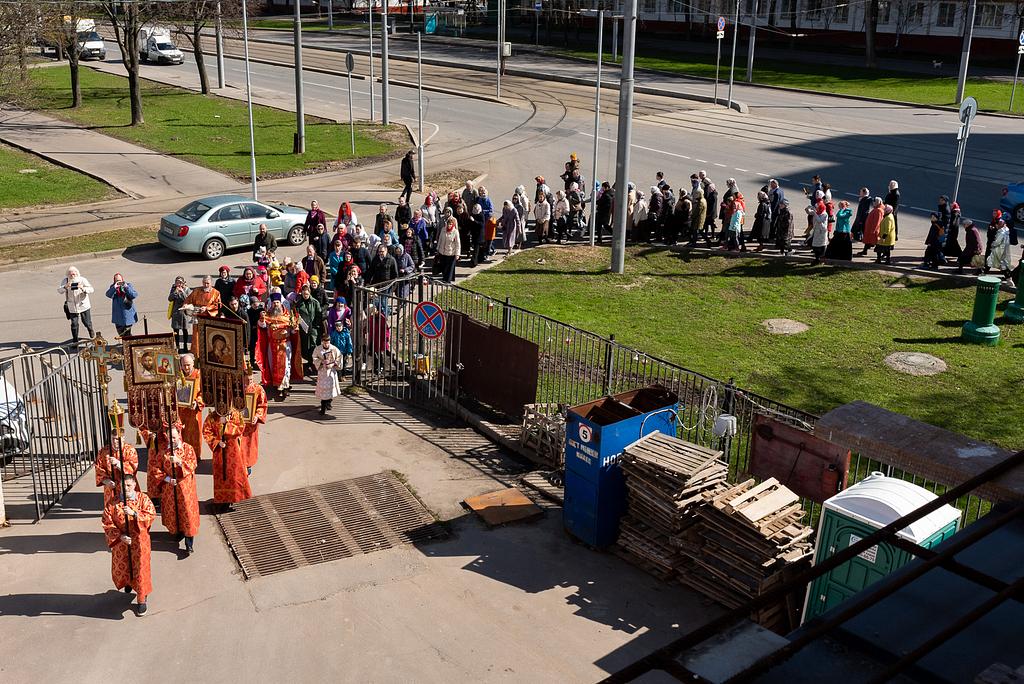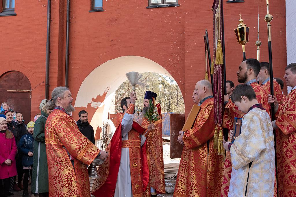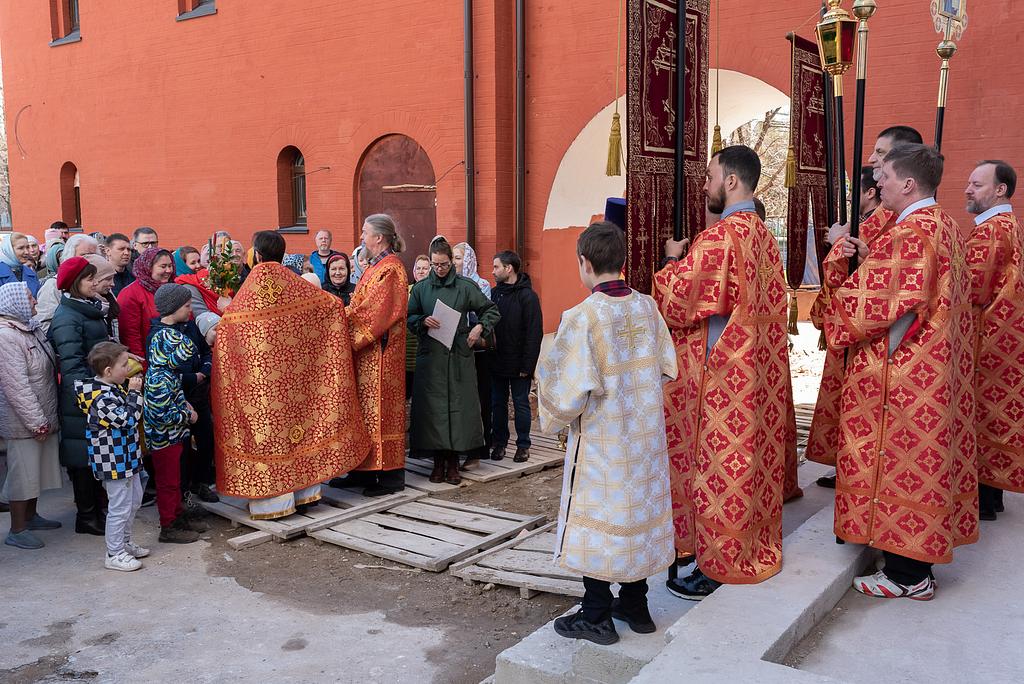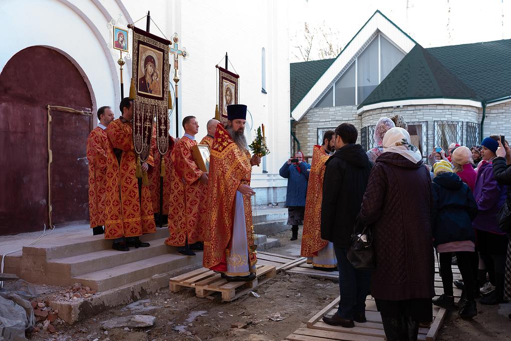 В сам день праздника по окончании Божественной Литургии впервые совершен торжественный Крестный ход вокруг строящегося храма в честь Патриарха Ермогена. По окончании богослужений Иерей Иоанн Омелянчук поздравил всех со светлым праздником Пасхи и обратился к прихожанам с проповедью.