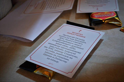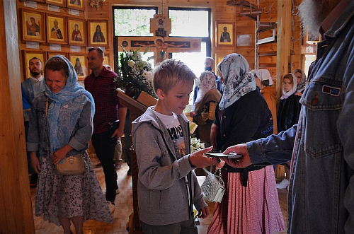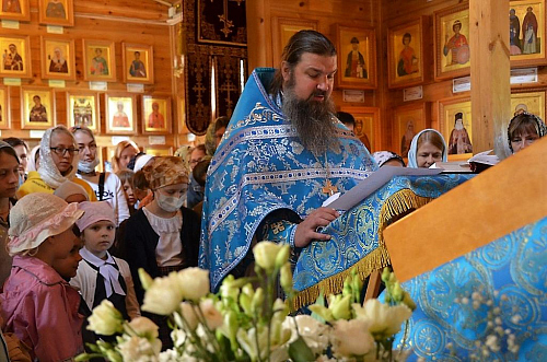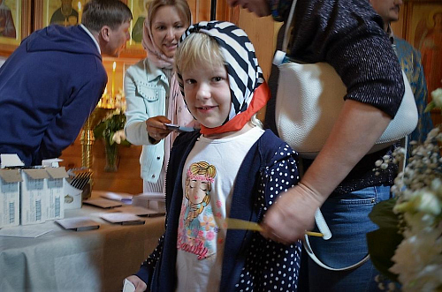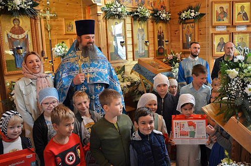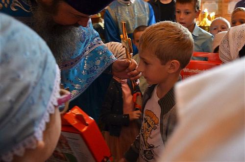 Настоятель окропил всех молящихся святой водой и поздравил детей с началом нового учебного года, вручив каждому шоколадку и молитвенное правило к началу учебного года. Каждому первокласснику также был вручен "Набор школьника".