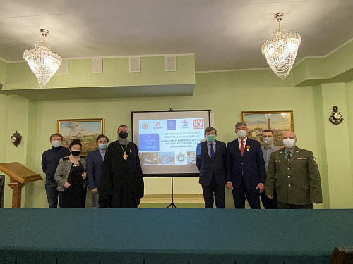 Новопашин Александр Александрович и Бондаренко Александр Юльевич, представители Совета ветеранов Военной контрразведки при ФСБ РФ, передали настоятелю замечательные книги о героях «невидимого фронта». По поручению ветеранов района-детей войны настоятель вручил Новопашину А. А. медаль в память 75-летия Победы. Также настоятель передал всем присутствующим привет и поздравления от ветерана Великой Отечественной войны, почетного жителя района Южное Бутово, Валентины Владимировны Бояршиновой, которая накануне мероприятия позвонила игумену Дамиану.