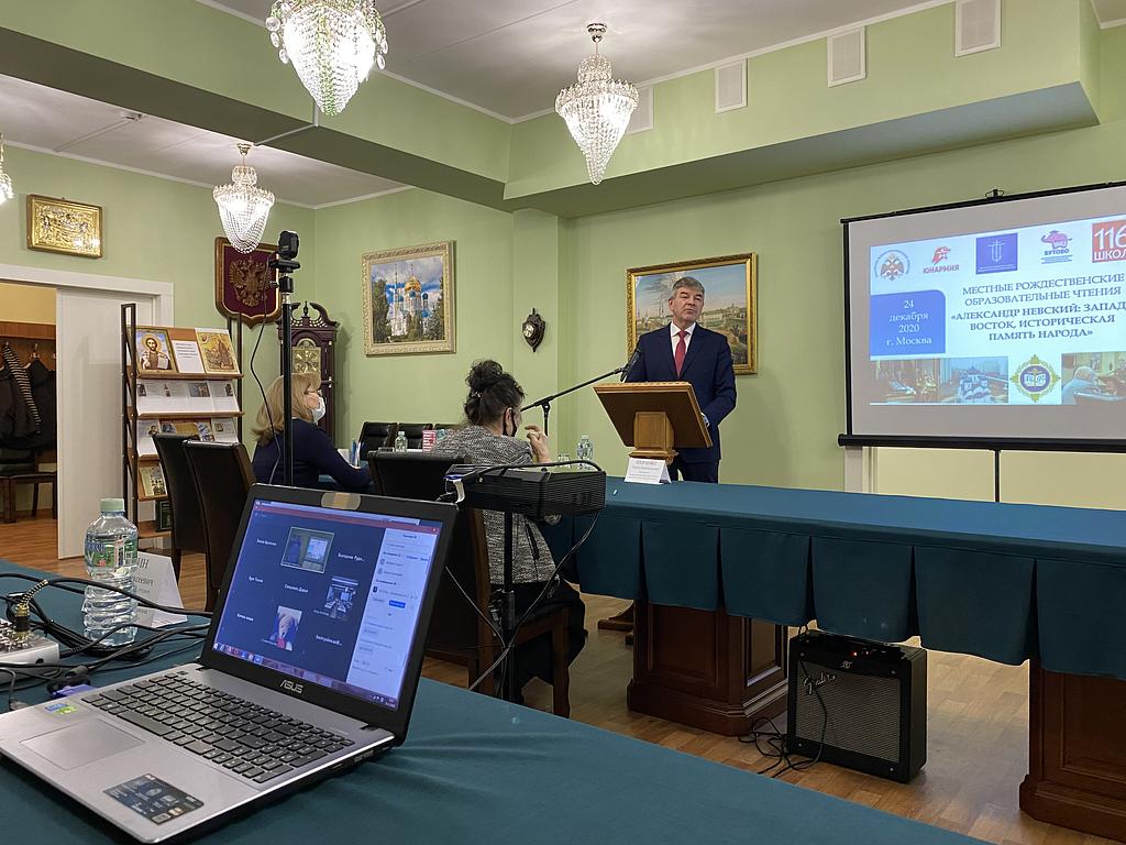 24 декабря в доме причта храма святого праведного воина Феодора Ушакова в Южном Бутове прошли местные Рождественские образовательные чтения «АЛЕКСАНДР НЕВСКИЙ: ЗАПАД И ВОСТОК, ИСТОРИЧЕСКАЯ ПАМЯТЬ НАРОДА», которые были приурочены к первой годовщине Великого освящения храма святого праведного воина Феодора Ушакова в Южном Бутове, 22.12.2019 г.