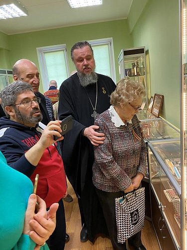 Представители Совета ветеранов посетили церковно-археологический музей Патриаршего подворья. Игумен Дамиан показал им особый экспонат.