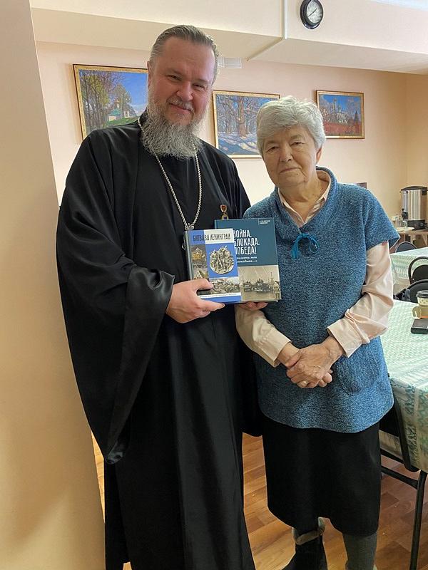 Также настоятель рассказал гостям о начале книгоиздательства в России в связи с прошедшим накануне Днем православной книги. Настоятель продемонстрировал ветеранам образцы старинных книг.