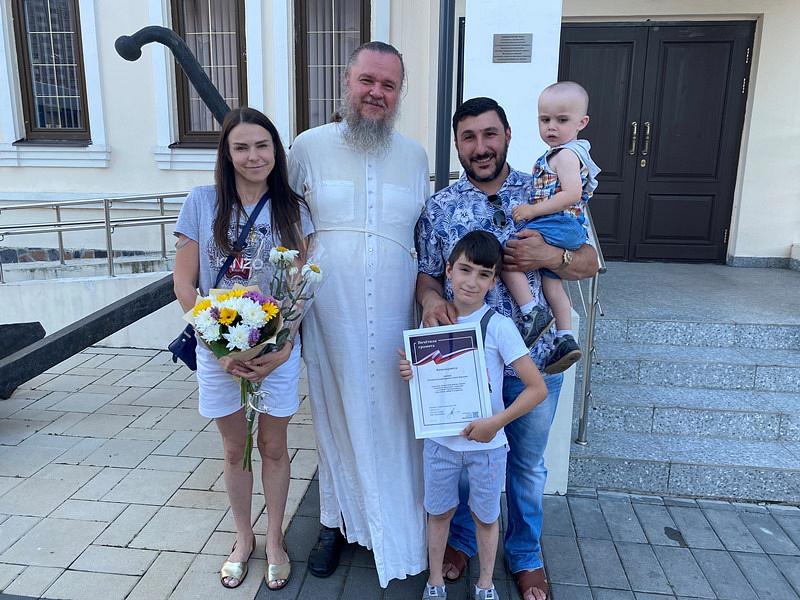 К собравшимся обратился настоятель храма игумен Дамиан, который тепло поздравил всех с замечательным праздником и пожелал сохранять и умножать такие добрые человеческие качества как любовь, терпение, семейные ценности.