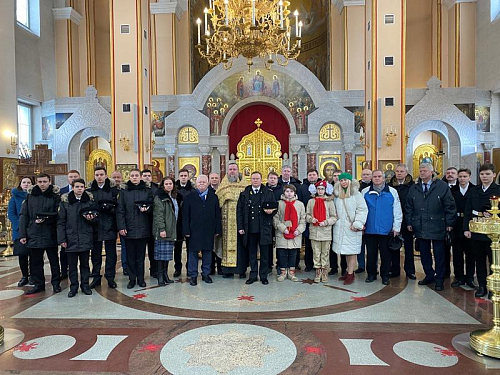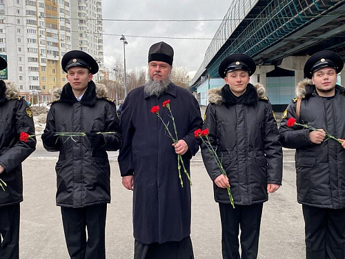 Далее состоялся Благодарственный молебен в храме святого праведного воина Феодора Ушакова в Южном Бутове в память о святом праведном воине Феодоре Ушакове, с молитвой о здравии моряков, речников Российского флота. Прозвучала заупокойная молитва о всех погибших Защитниках Отечества, моряках, родителях Святого адмирала, Феодора и Параскевы, о его роде. После богослужения настоятель храма обратился к собравшимся в храме со словом приветствия и рассказал о строительстве храма и его активной деятельности в различных направлениях.