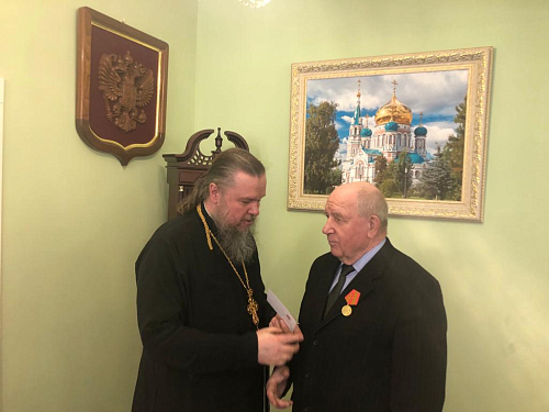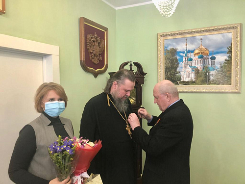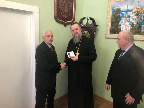 По поручению Совета ветеранов военных контрразведчиков ФСБ России гости вручили настоятелю храма игумену Дамиану (Залетову) памятную медаль: 75-летия Победы над Германией (в честь СМЕРША). Также настоятелю был передан ряд книг по истории Военной контрразведки.