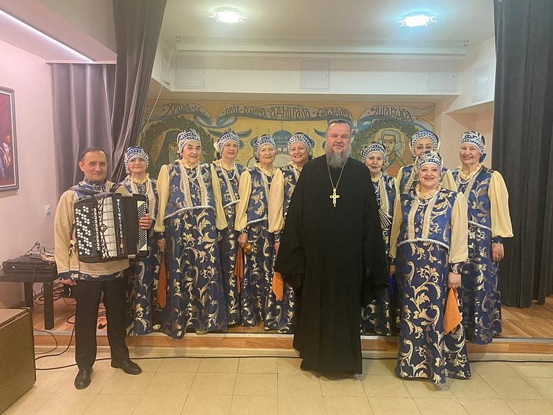 В праздничном мероприятии принял участие творческий коллектив "Сударушки". Концерт прошел в актовом зале дома причта храма святого праведного воина Феодора Ушакова в Южном Бутове.