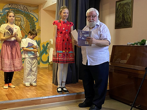 По окончанию спектакля руководитель Театральной студии – Владимир Георгиевич Егоров вручил каждому артисту именную грамоту от храма святого адмирала, а директор Воскресной школы вручила им подарки. Сидящие в зале дети тоже получили Пасхальные подарки.