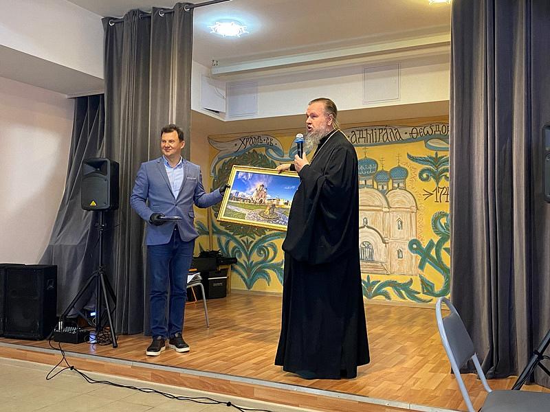 Игумен Дамиан также поблагодарил самого летчика-космонавта за его труды на благо России, вручив памятную медаль. Также Романенко Р.Ю. была передана в дар фотокартина с изображением храма святого праведного адмирала Феодора Ушакова в Южном Бутове, изготовленная в память Великого освящения храма, которое совершил 22 декабря 2019 года Святейший Патриарх Московский и всея Руси Кирилл.