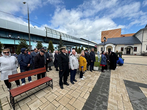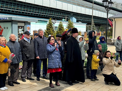 Настоятель храма игумен Дамиан (Залетов) поздравил прихожан с праздником Светлого Христова Воскресения, 80-летием Великой Победы и Днем Черноморского флота, на котором служил святой праведный воин Феодор Ушаков.
