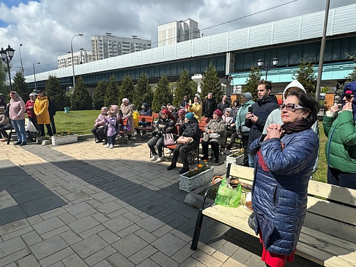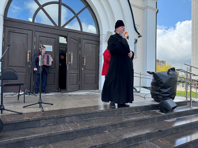 После праздничного богослужения прихожане и все желающие были приглашены на праздничный концерт, который состоялся на улице около храма святого праведного воина Феодора Ушакова в Южном Бутове.