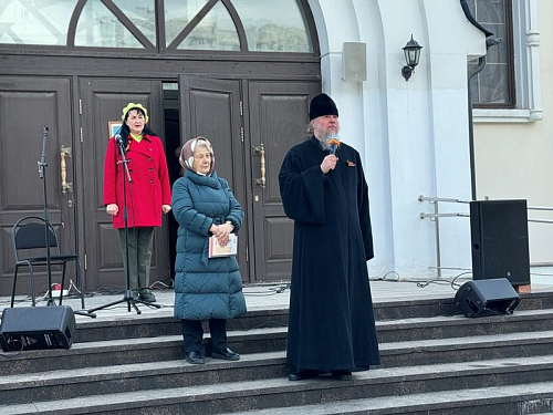 Между номерами концерта перед собравшимися выступили почетные гости Патриаршего подворья, которые поздравляли жителей района и гостей с Днем Победы, делились своими мыслями и чувствами.