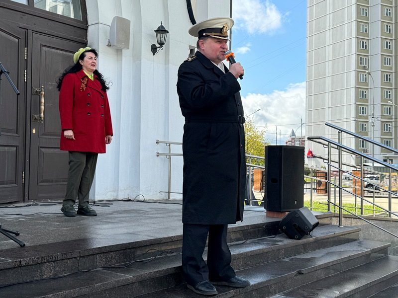 Представитель Совета ветеранов Черноморского флота, капитан 1-го ранга, Александр Дмитриевич Комаров, по доброй традиции исполнил песню о России.