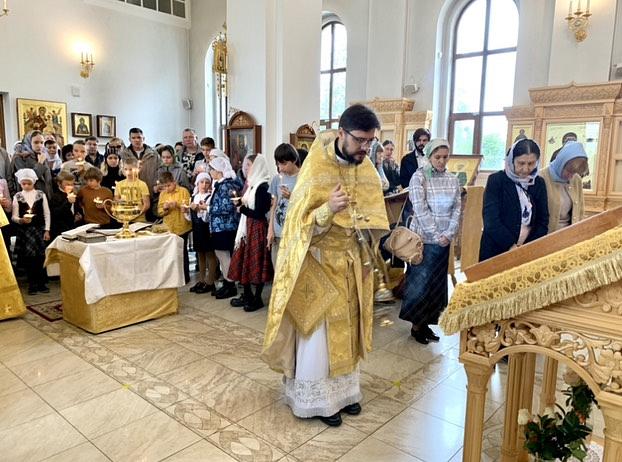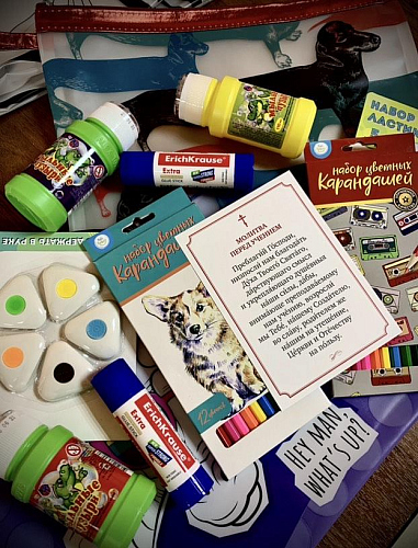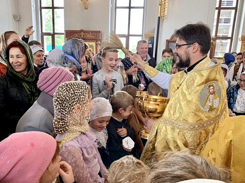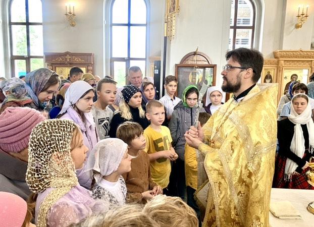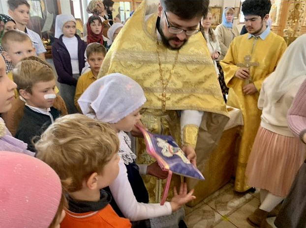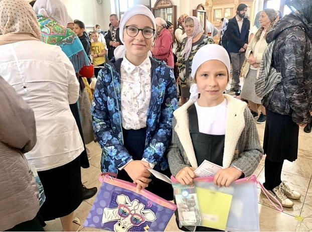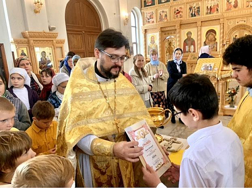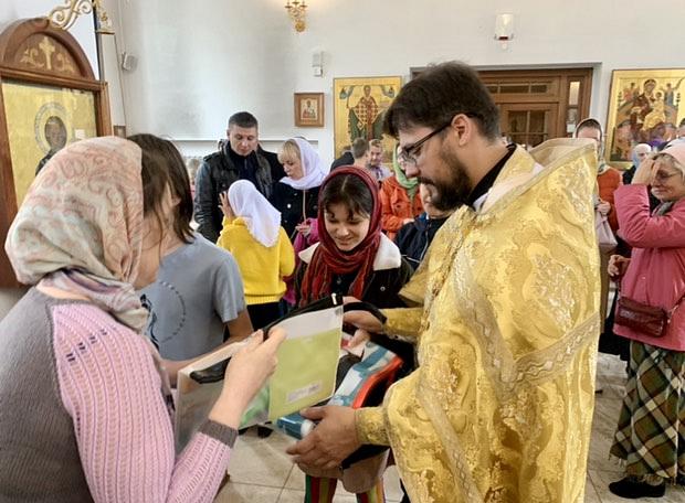 Настоятель окропил всех молящихся святой водой, благословил всех учащихся и вручил каждому молитвенное правило к началу учебного года и наборы канцелярских принадлежностей.