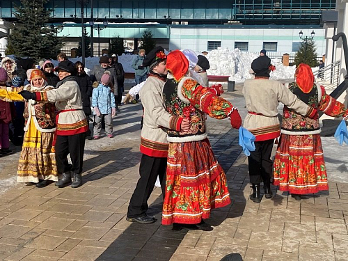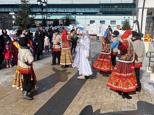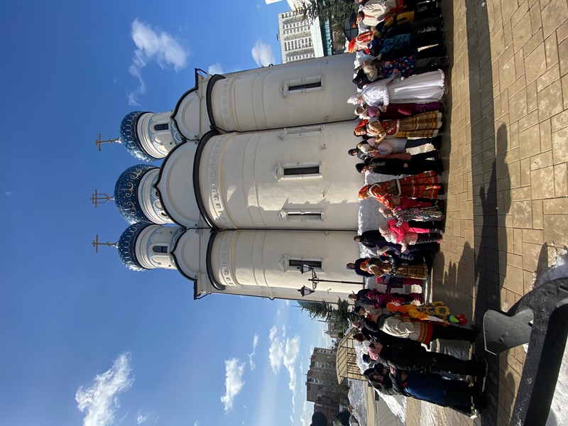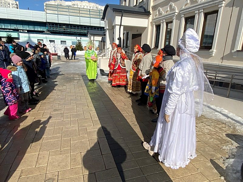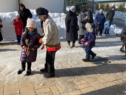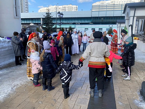 Молодежь храма и учащиеся Воскресной школы Подворья под руководством Чумаковой Елены Николаевны в красивых русских народных костюмах вовлекали прихожан в праздничное действо!