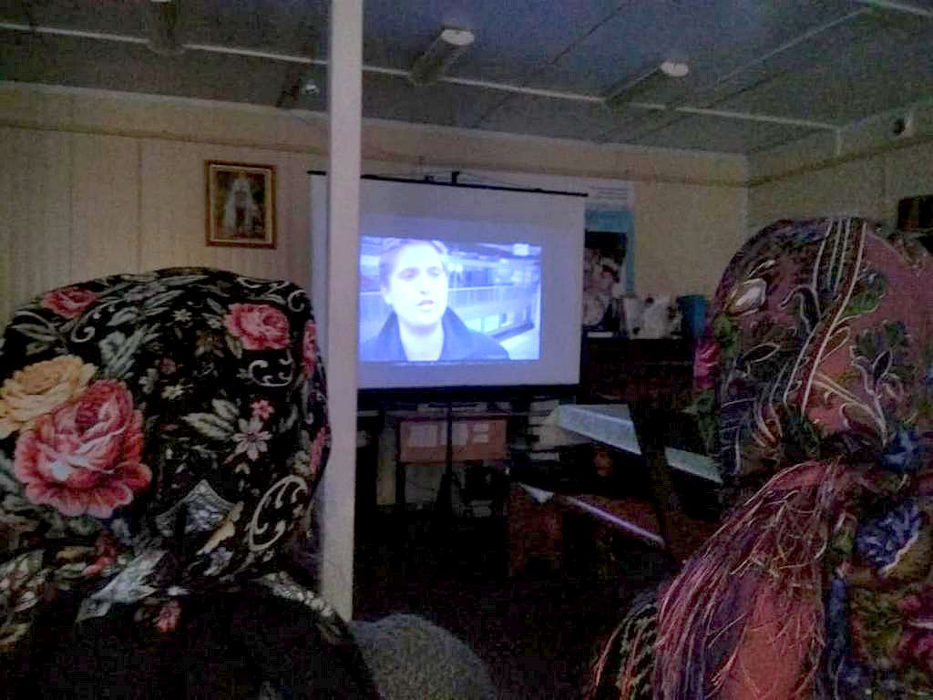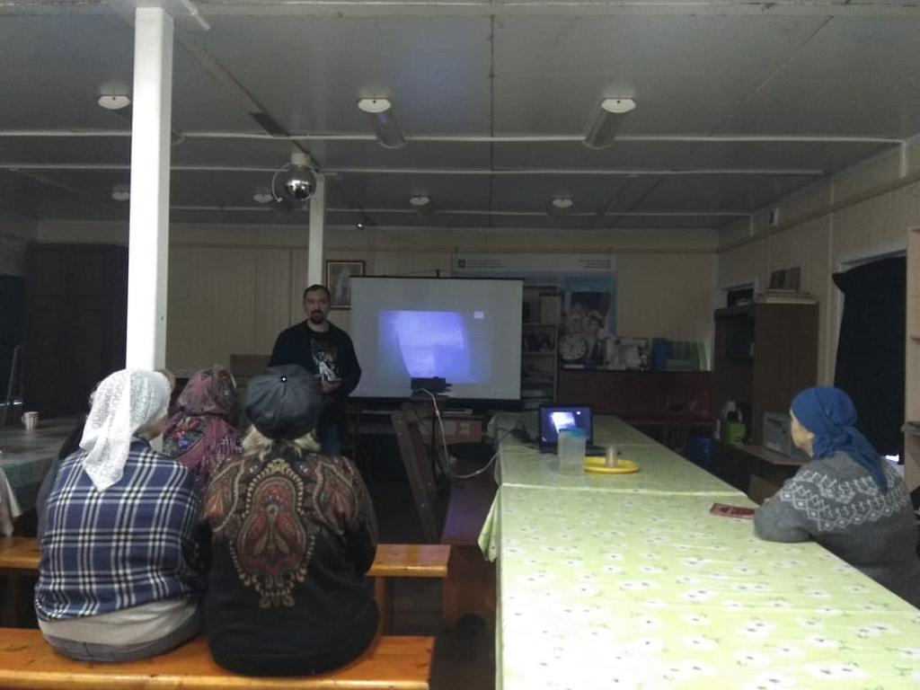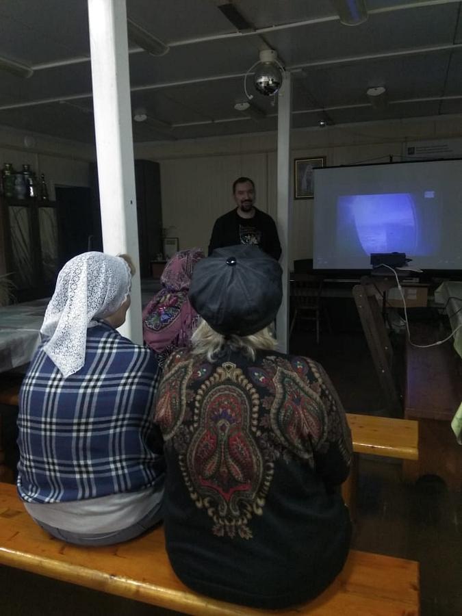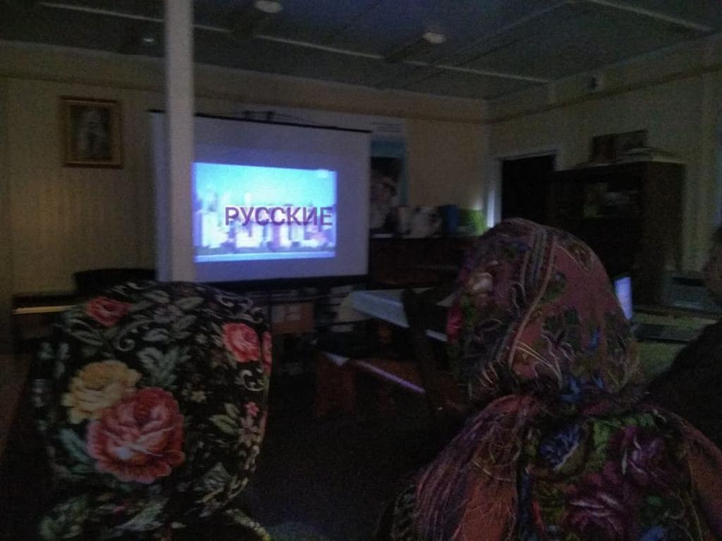 После Божественной Литургии и совместной трапезы прихожане собрались в здании Воскресной школы на очередной кинопоказ. На этот раз их ждал документальный фильм архимандрита Тихона (Шевкунова) «Русские». Показ в рамках кинолектория организовал катехизатор храма Михаил Погорелов. Перед просмотром ведущий рассказал об общей нелегкой доле эмигрантов первой волны: белых офицеров, дворян, купцов, мещан, крестьян, казаков, вынужденно уехавших из России в 18–20 годах прошлого века. Герои фильма — потомки эмигрантов. Фильм посвящен тем, кто смог сохранить веру и огромную любовь к своей далекой родине — России.