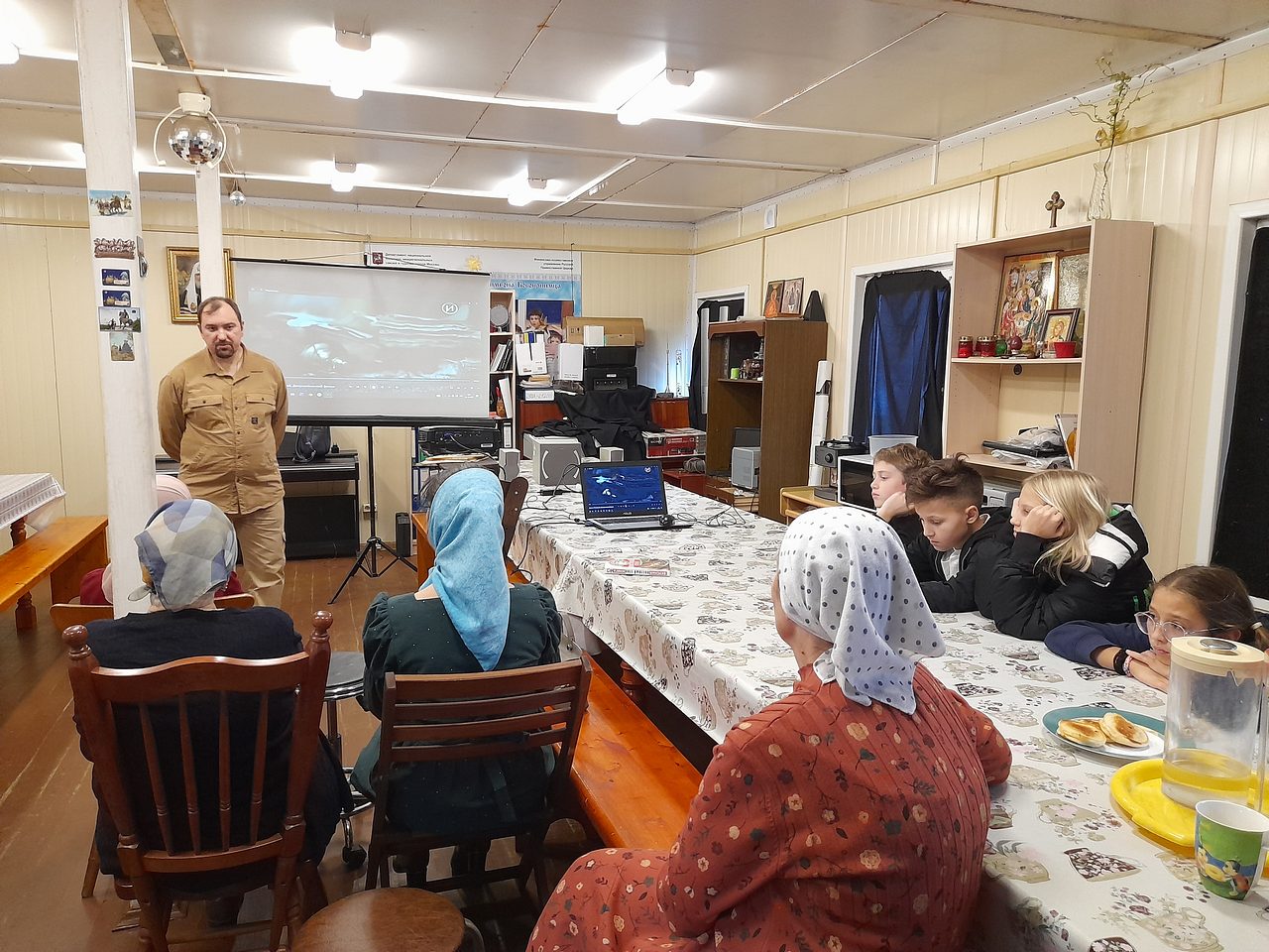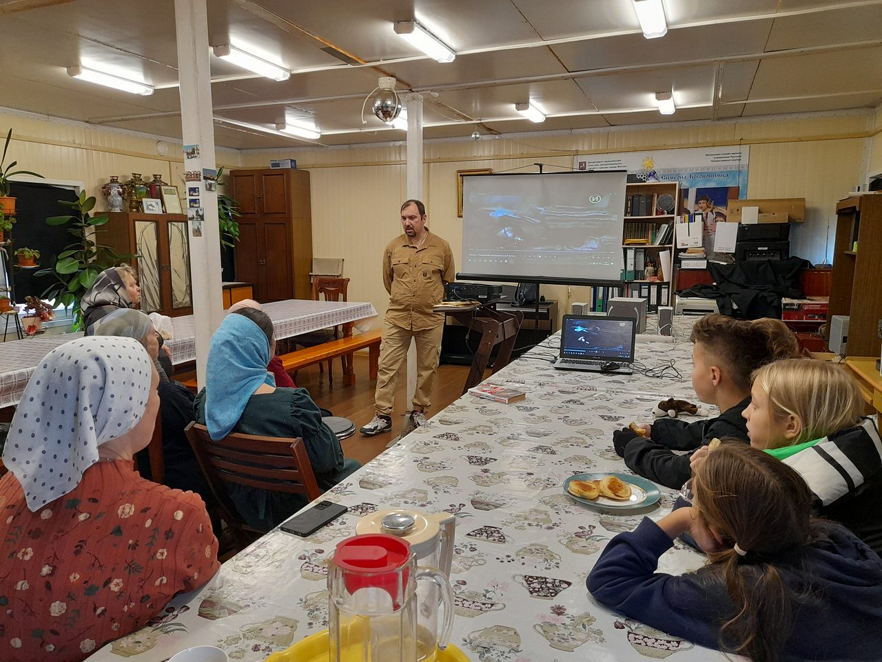 Перед показом ведущий кинолектория, катехизатор храма, Михаил Погорелов вкратце рассказал о событиях 1612 года, когда покровительство Пречистой Богородицы помогло народному ополчению одержать победу над польскими захватчиками.
