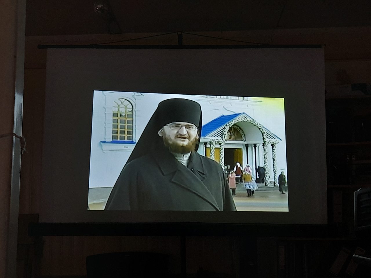 Перед показом ведущий кинолектория, катехизатор храма, Михаил Погорелов вкратце рассказал о чудотворном образе Божией Матери «Знамение» Курско-Коренном.