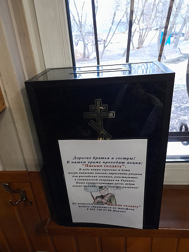 7 апреля 2024 года, в Неделю 3-ю Великого поста, Крестопоклонную, в день праздника Благовещения Пресвятой Богородицы, в Воскресной школе храма святых праведных Симеона Богоприимца и Анны пророчицы в Черемушках прошла очередная акция «Письмо солдату».