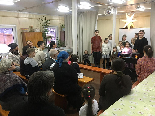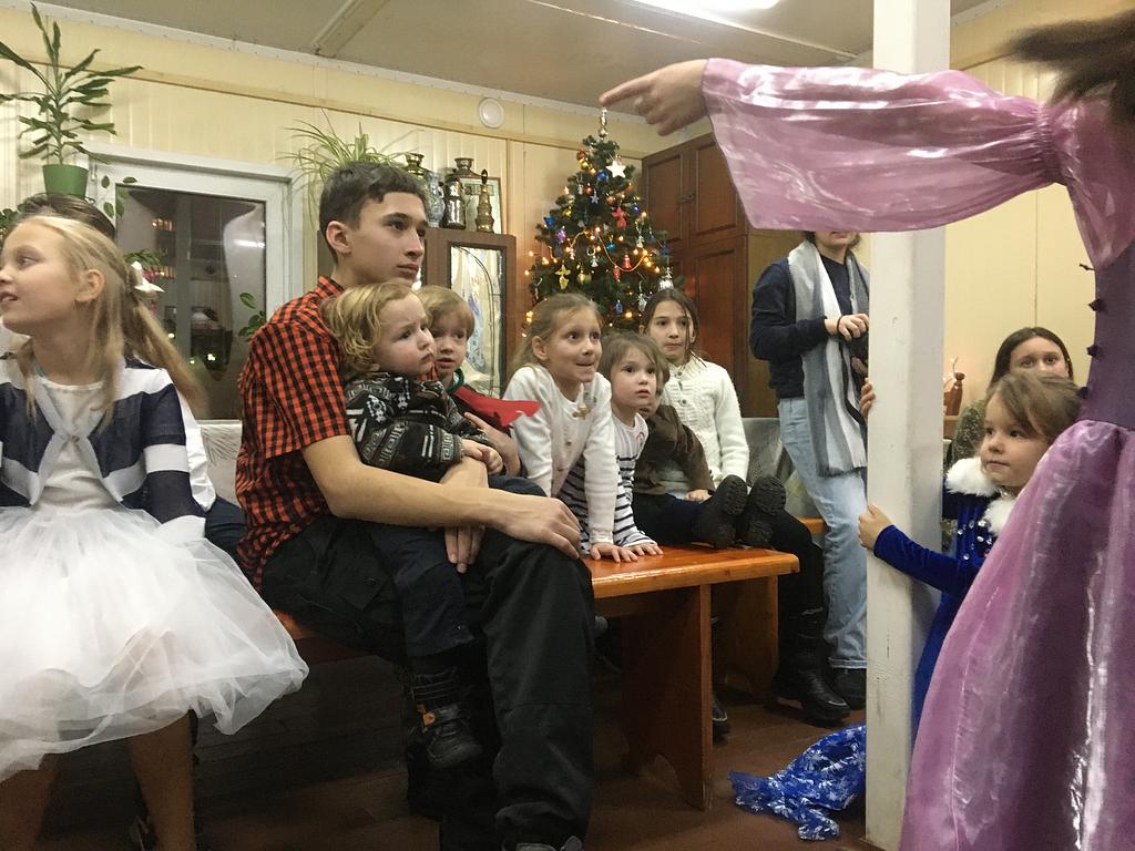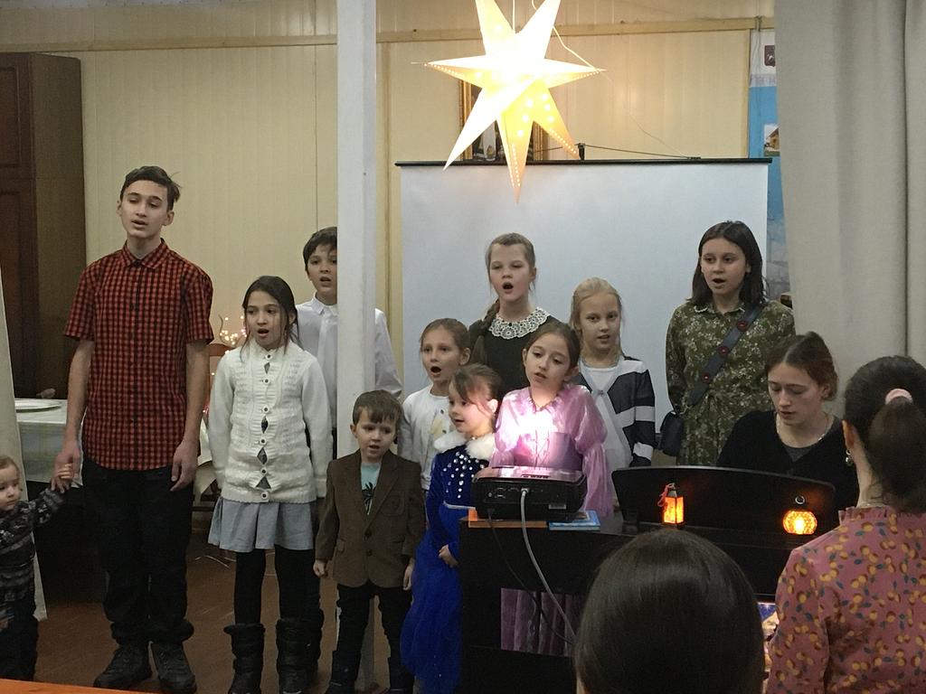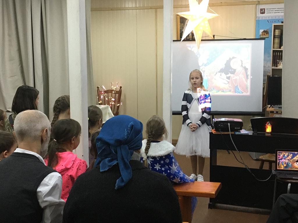 В начале дети исполнили рождественские колядки, где им аккомпанировала на фортепиано бывшая воспитанница Воскресной школы Василиса. Затем ребята выступили с сольными номерами: Екатерина Евстигнеева прочла рождественские стихи, Николай Семкин исполнил несколько музыкальных произведений на аккордеоне. Далее участники концерта играли в пантомиму и водили хоровод.