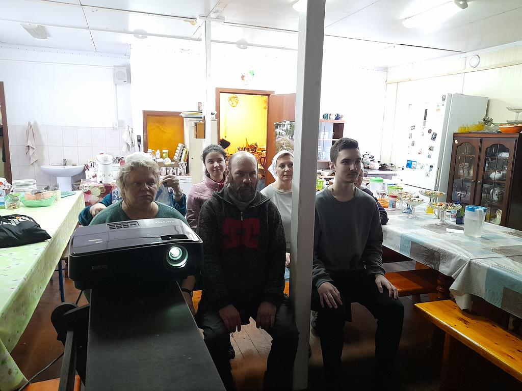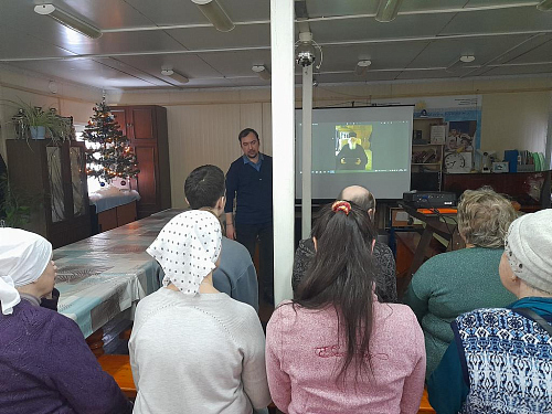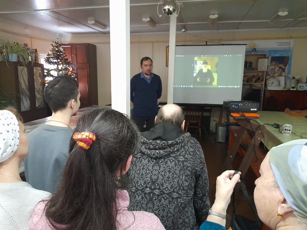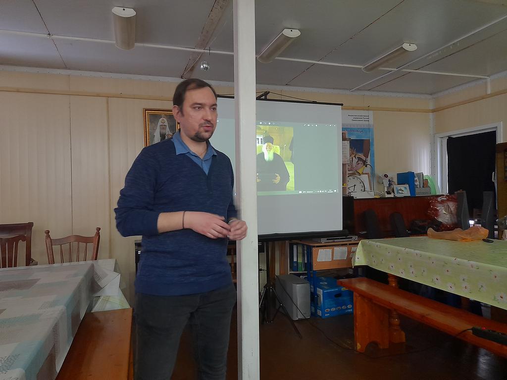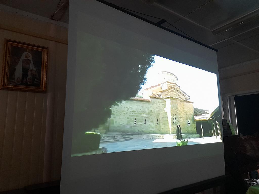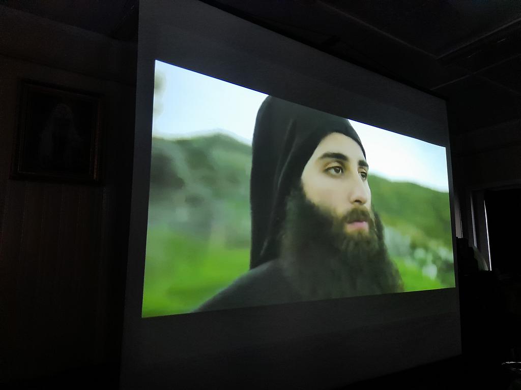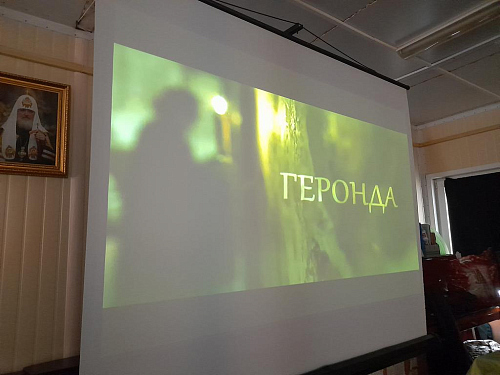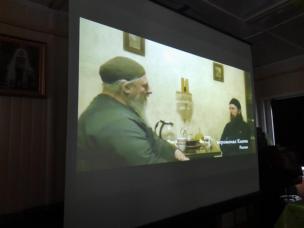 После Божественной Литургии и совместной трапезы прихожане собрались в здании Воскресной школы на кинопоказ документального фильма «Геронда». Показ в рамках кинолектория вел катехизатор храма Михаил Погорелов.