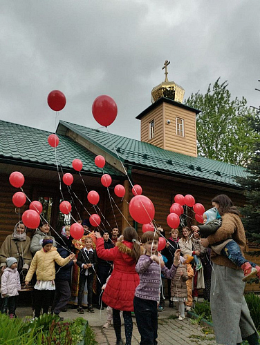 Также, по традиции, юным звонарям вручили пасхальные воздушные шары, которые они все вместе радостно запустили в небо.