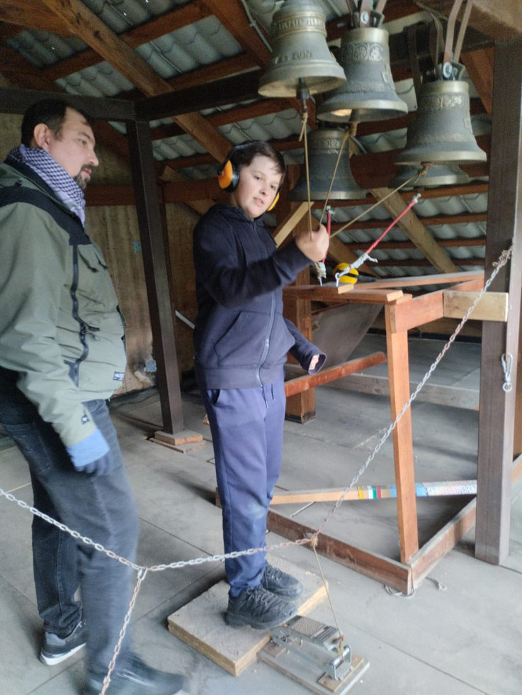 Вот и сегодня, перед Пасхальной Вечерней, юные прихожане собрались на колокольне.
