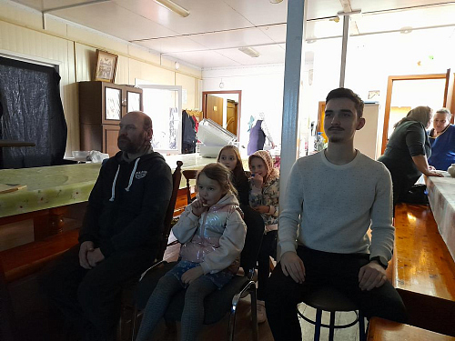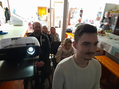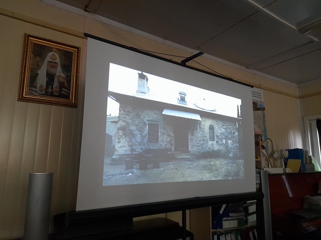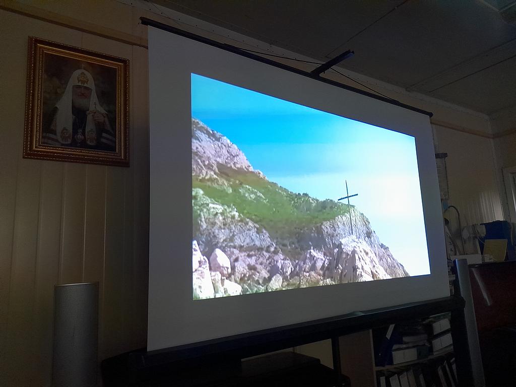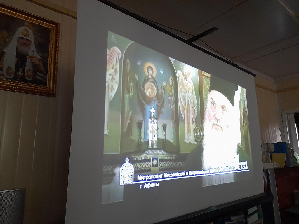 Показ провел прихожанин Петр. На показе присутствовали воспитанники Воскресной школы.