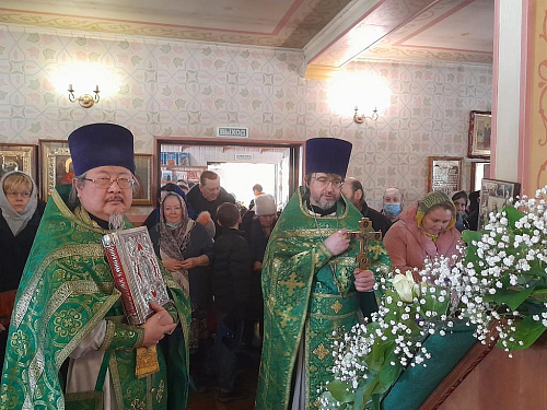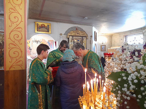 Накануне прихожане украсили иконы главных святых храма цветами. В трапезной готовились угощения для гостей. В день праздникахрам наполнился верующими, которые пришли воздать честь и хвалу главным Небесным покровителям храма – святым праведным Симеону Богоприимцу и Анне пророчице. По Преданию, две тысячи лет назад этиветхозаветные праведники удостоились встретить в Иерусалимском храме Богомладенца Христа и узнать в нем Мессию.