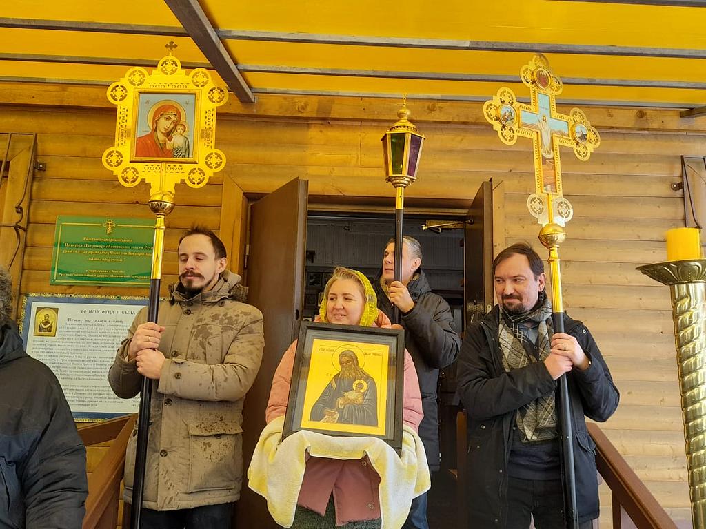 По окончании праздничного богослужения настоятель возглавил Крестный ход вокруг храма. Участники шествия возносили молитвы к святым праведным Симеону и Анне, славословя их и прося о заступничестве и помощи.Праздничный колокольный благовест призывал всех неравнодушных присоединиться к торжеству.