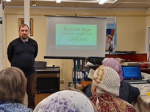 После показа ведущий кинолектория, катехизатор храма, Михаил Погорелов рассказал зрителям о Спасо-Преображенском Соловецком монастыре, святынях и достопримечательностях Соловецких островов. Ведущий поделился своими впечатлениями от поездки на Соловки этим летом, показал снятые им фотографии и видео.
