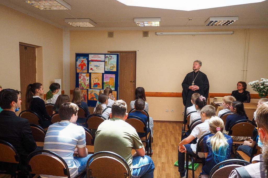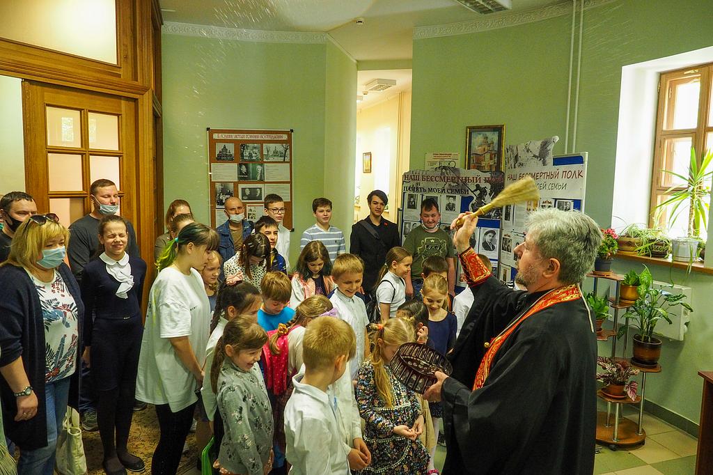 Затем педагоги и учащиеся собрались в актовом зале, где духовник Воскресной школы протоиерей Владимир Кучумов поздравил собравшихся с окончанием учебного года и напомнил, что образование — это процесс непрерывный и с окончанием уроков не заканчивается.