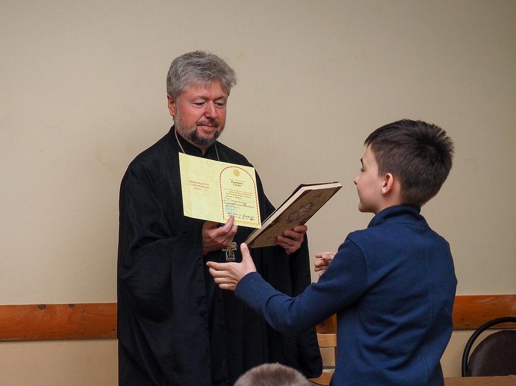 Для учащихся 4 класса завершился этап начального образования. Протоиерей Владимир вручил им Свидетельства, подписанные настоятелем храма епископом Мытищинским Феофилактом.