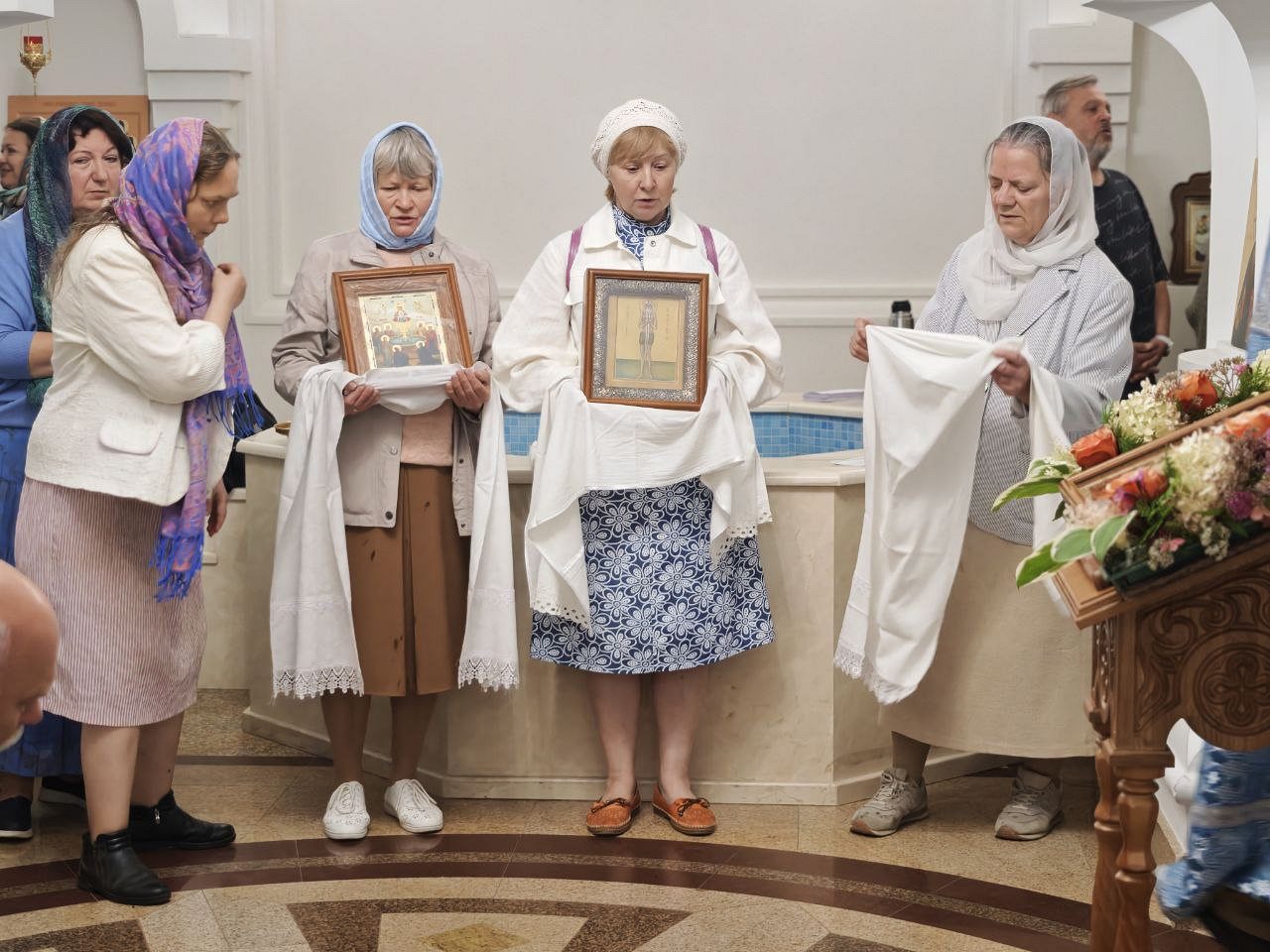 По окончании Литургии вокруг храма был совершен крестный ход, а затем пропето величание Пресвятой Богородице перед Ее иконой Владимирская.