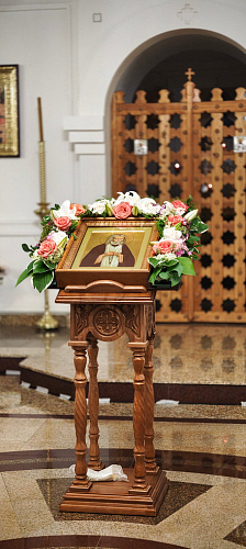 После заамвонной молитвы вокруг храма был совершен крестный ход, а затем пропетовеличание преподобному Серафиму Саровскому перед его иконой.