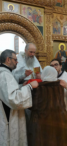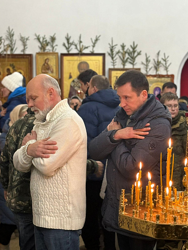 На Божественной литургии было многолюдно, некоторые пришли целыми семьями. Дети, молодежь, в числе которой бойцы военно- патриотического клуба «6 рота» и люди старшего поколения молились вместе, прославляя Богомладенца. Святых Христовых Таин причастилось около двухсот человек.