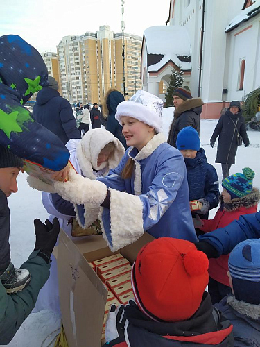 Сообщество молодежи и служба милосердия храма устроили Рождественские гуляния для маленьких прихожан, которые пришли на праздничную Божественную Литургию.