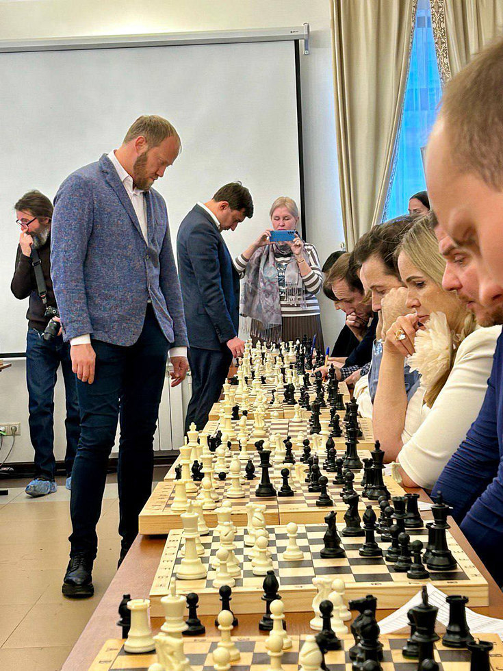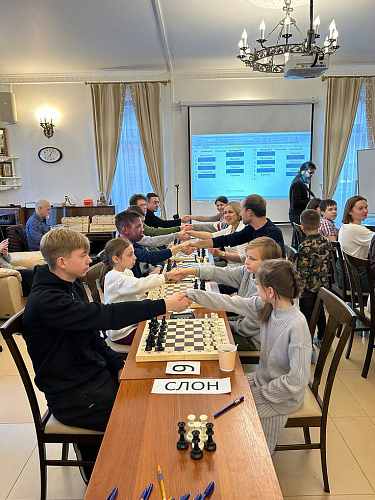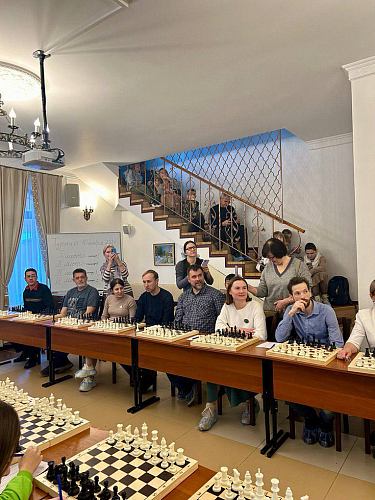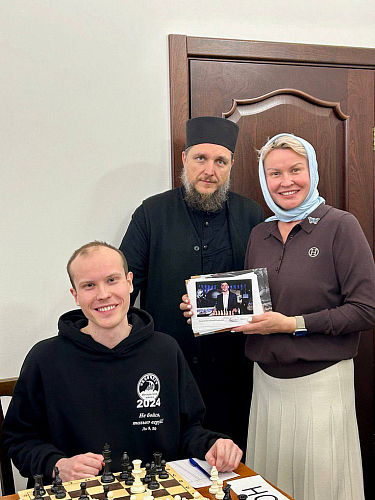 Тренер Воскресной школы "Форпост " Игорь Смирнов боролся дольше всех взрослых шахматистов, и гроссмейстеры победно завершили партию на 37 ходу. Игорю, а также Дарье и Александру Казанским вручили личные призы за самые интересные партии.
