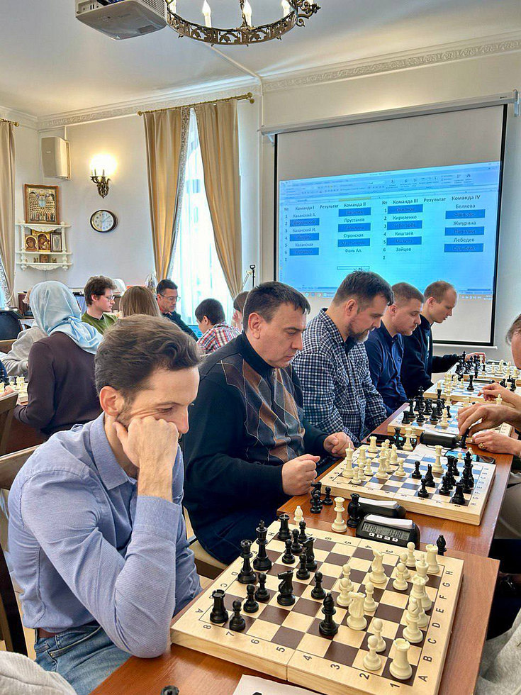 Всем шахматистам также были вручены уникальные памятные грамоты в фирменном стиле нашего прихода об участии в сеансе одновременной игры. А в качестве разминки перед встречей с гроссмейстерами состоялся командный турнир – это был круговик с таймингом по 10 минут, где участвовали 24 шахматиста. Победители получили кубок и шоколадки.