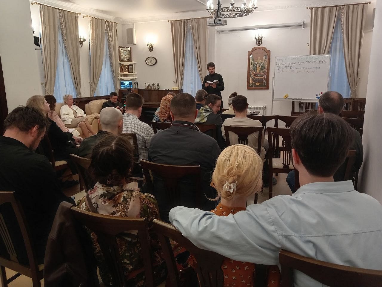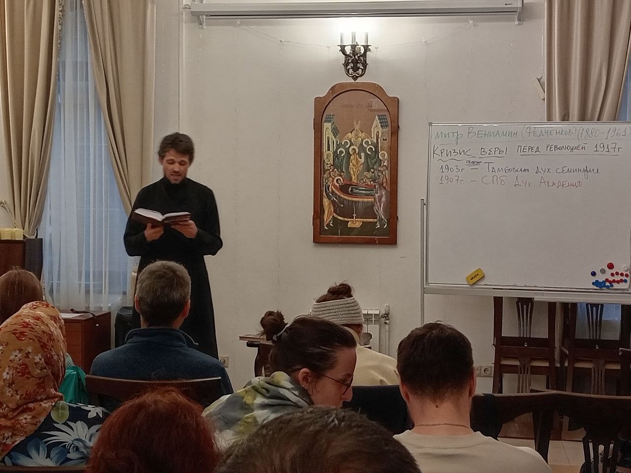 18 мая 2025 года в храме Всех преподобных отцев Киево-Печерских в Старых Черёмушках прошла очередная встреча с преподавателем Московской духовной академии диаконом Ярославом Калининым. Как и планировалось, основным предметом беседы стал кризис веры перед революцией 1917 года. Проследить эту, казалось бы, безрадостную тему отец Ярослав предложил через призму жизни и литературного наследия митрополита Вениамина (Федченкова; 1880–1961) – автора множества книг, прекрасного рассказчика и мемуариста. Владыка Вениамин предстал перед слушателями очень светлым, жизнелюбивым, мудрым человеком.